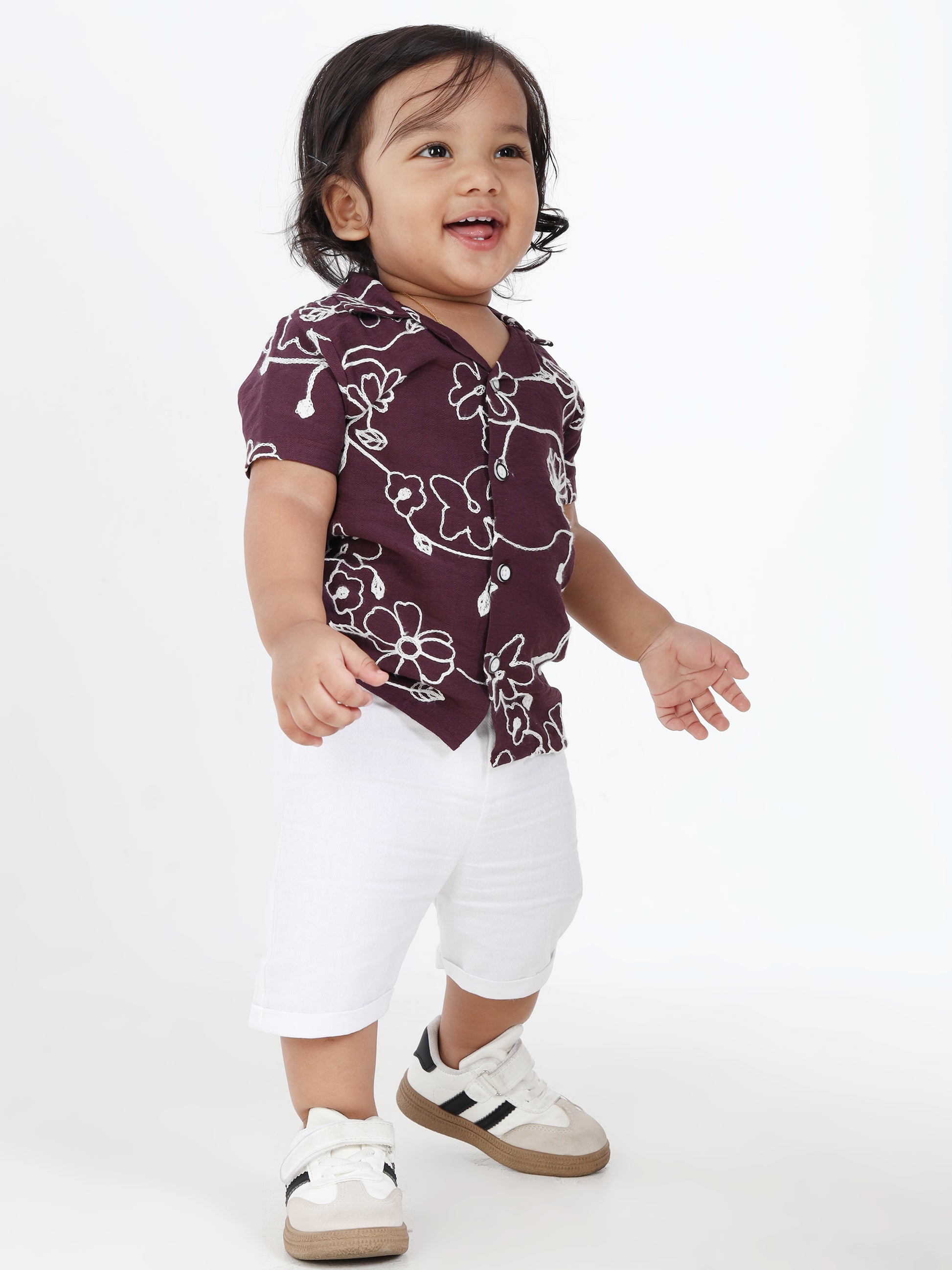 This cute kids' coord set is made from soft woven fabric for all-day comfort. Featuring a smart collar neck, short sleeves, and a fun printed pattern, it’s perfect for playdates and outings. Stylish, breathable, and easy to wear!