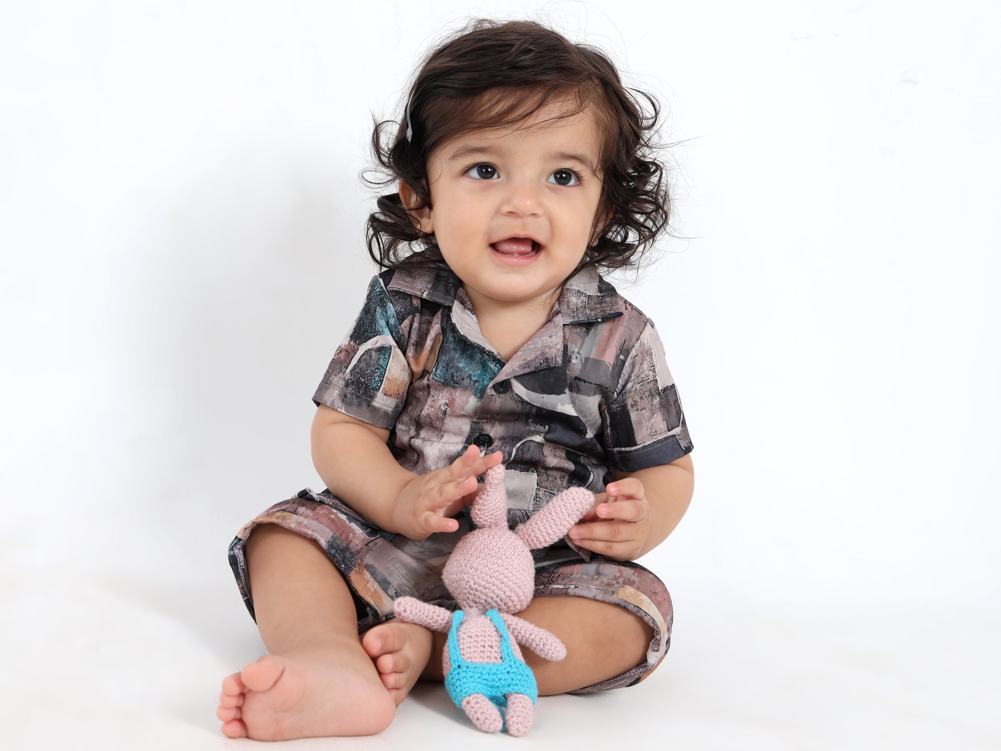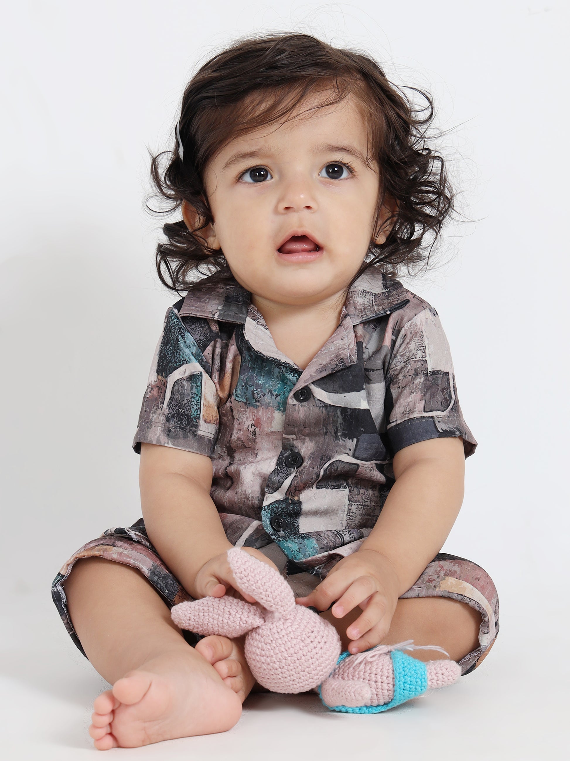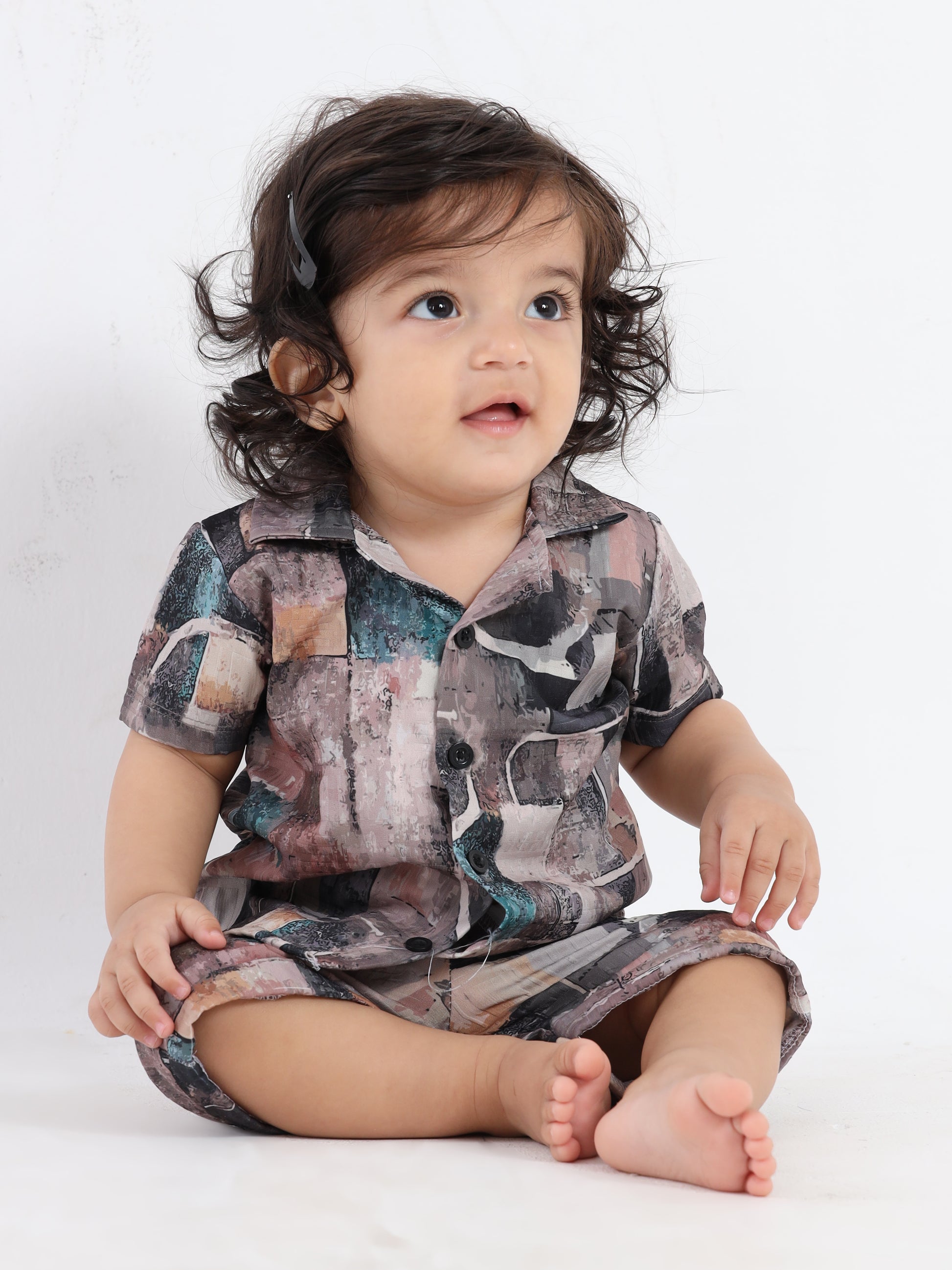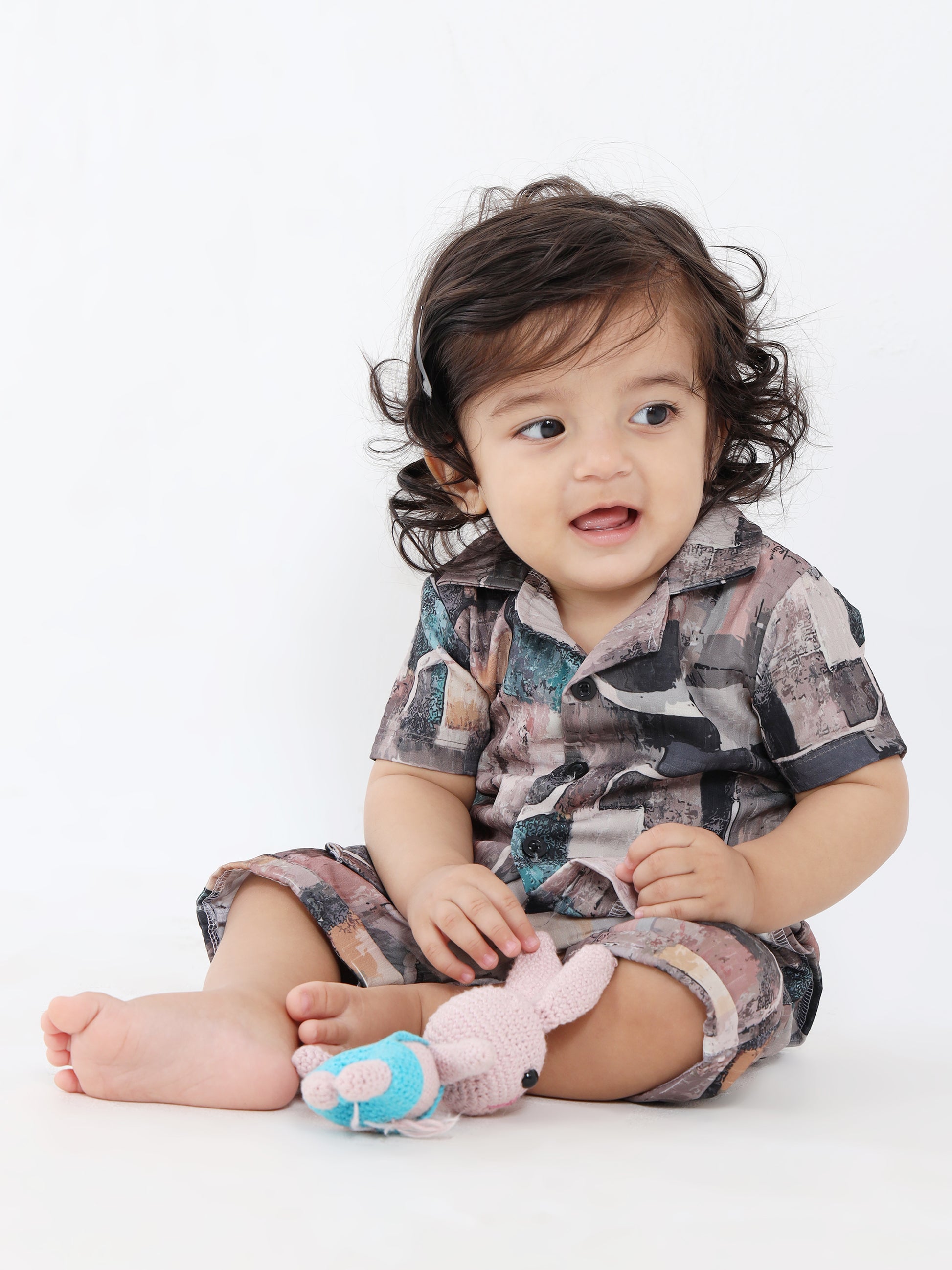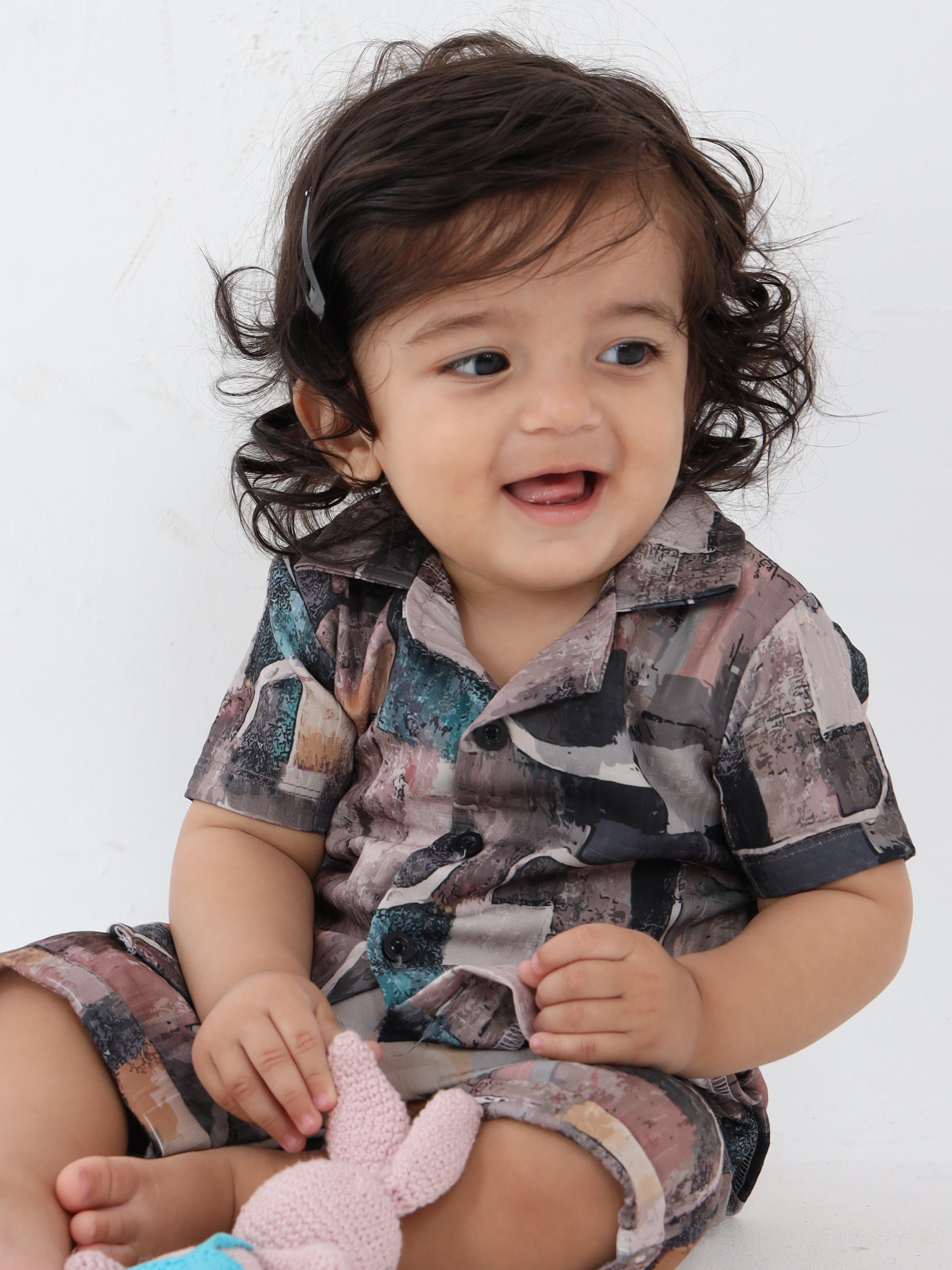 This cute kids' coord set is made from soft woven fabric for all-day comfort. Featuring a smart collar neck, short sleeves, and a fun printed pattern, it’s perfect for playdates and outings. Stylish, breathable, and easy to wear!