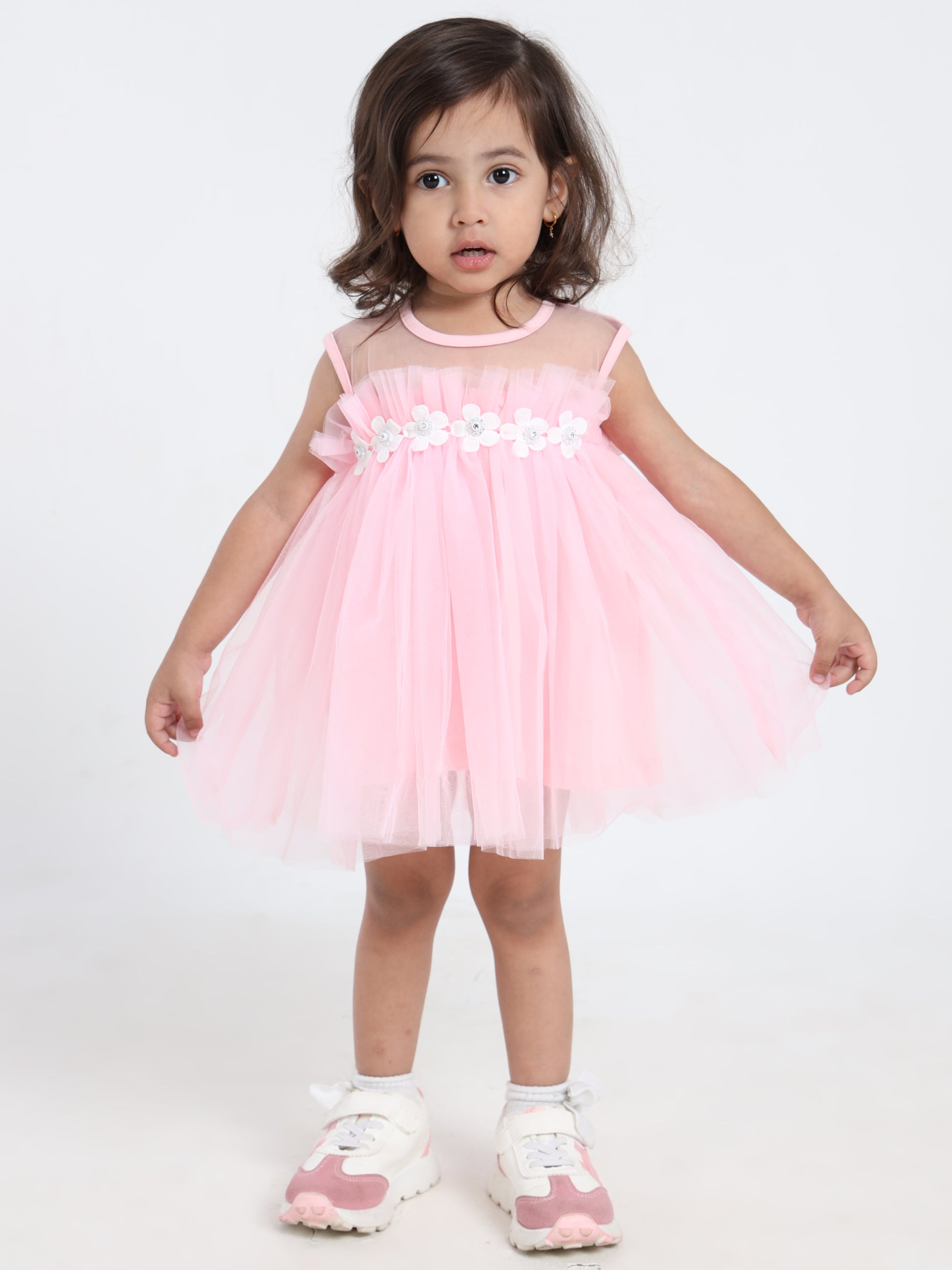 This Net Frock is a perfect mix of elegance and comfort. Designed with a comfortable regular fit, round neckline, and knee-length cut, it offers a graceful look. The sleeveless design adds a stylish touch, while the embroidered or solid pattern enhances its charm. Ideal for special occasions and celebrations!