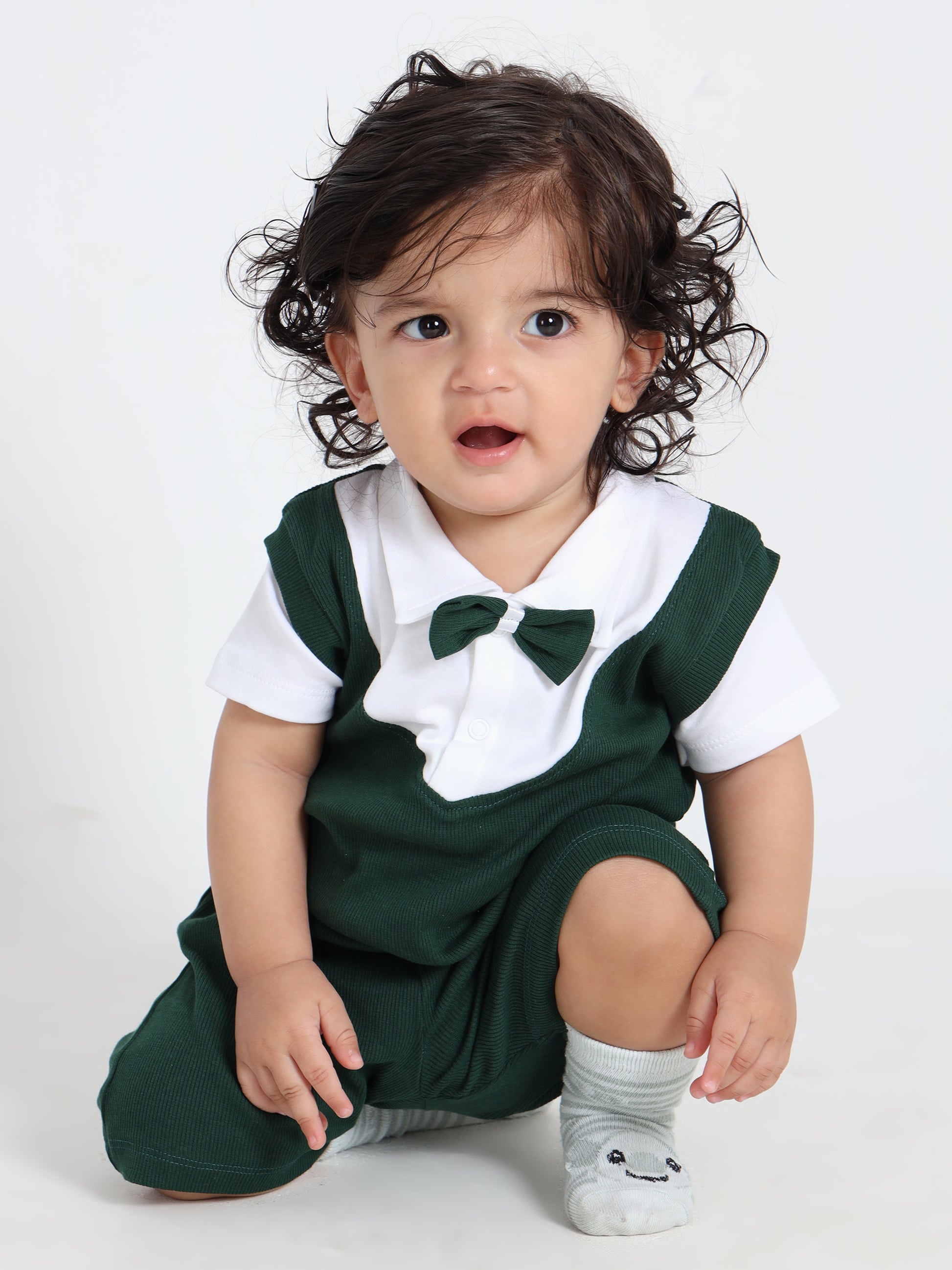 This adorable kids' dungaree set is made from soft knitted denim, ensuring a comfortable regular fit for all-day wear. The set includes a solid short-sleeve inner top with a smart collar neck, perfectly paired with classic dungarees for a trendy yet practical look. Ideal for playdates, outings, or casual wear, this outfit keeps your little one stylish and comfy!